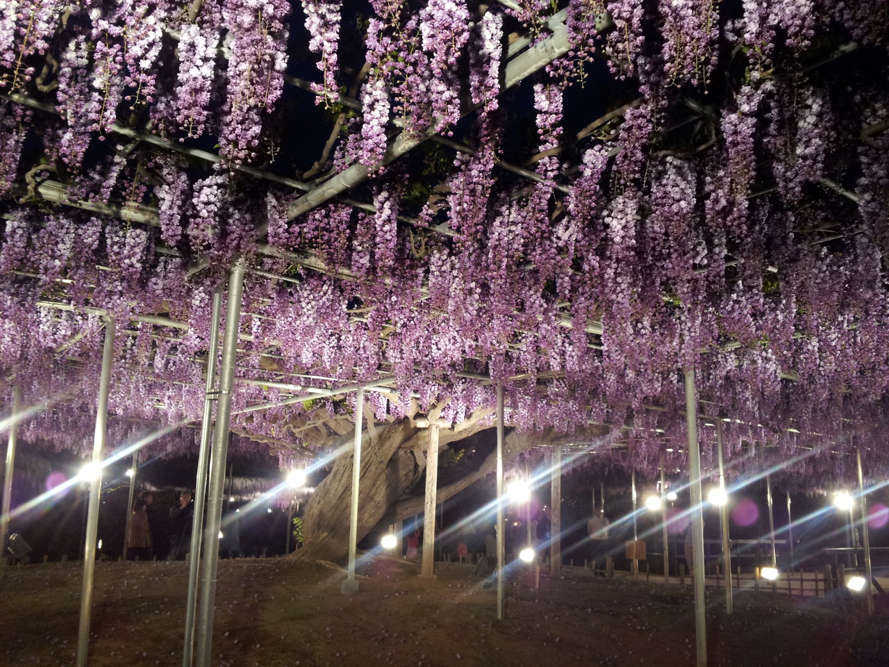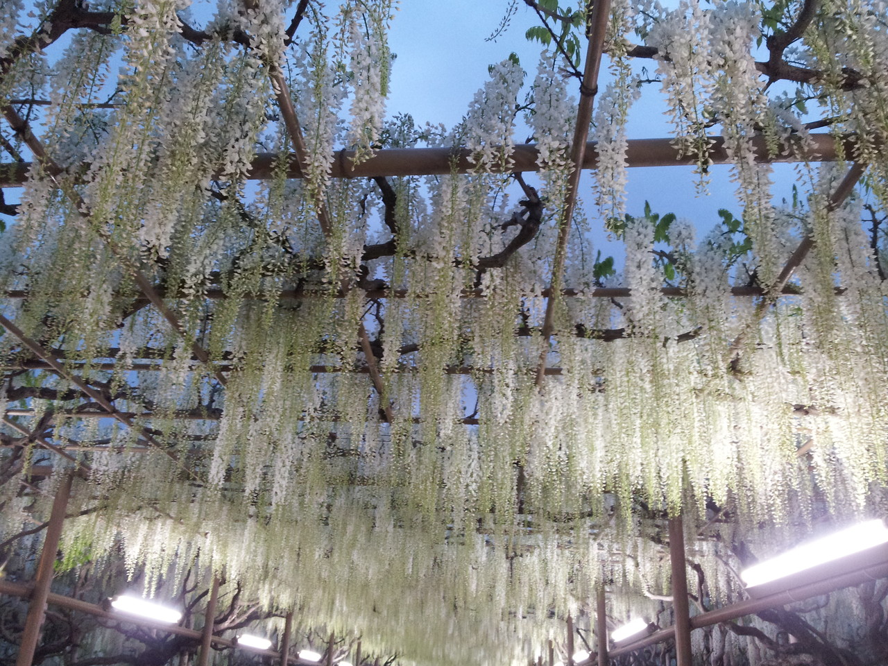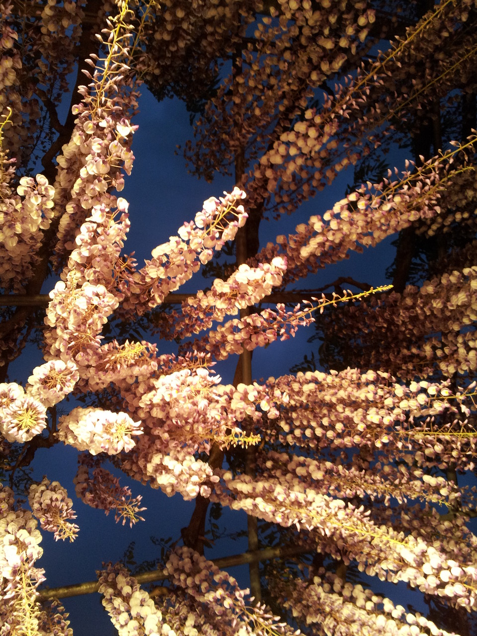 ライトアップされた藤の姿が見たくて、陽が沈む頃に足を運びました。