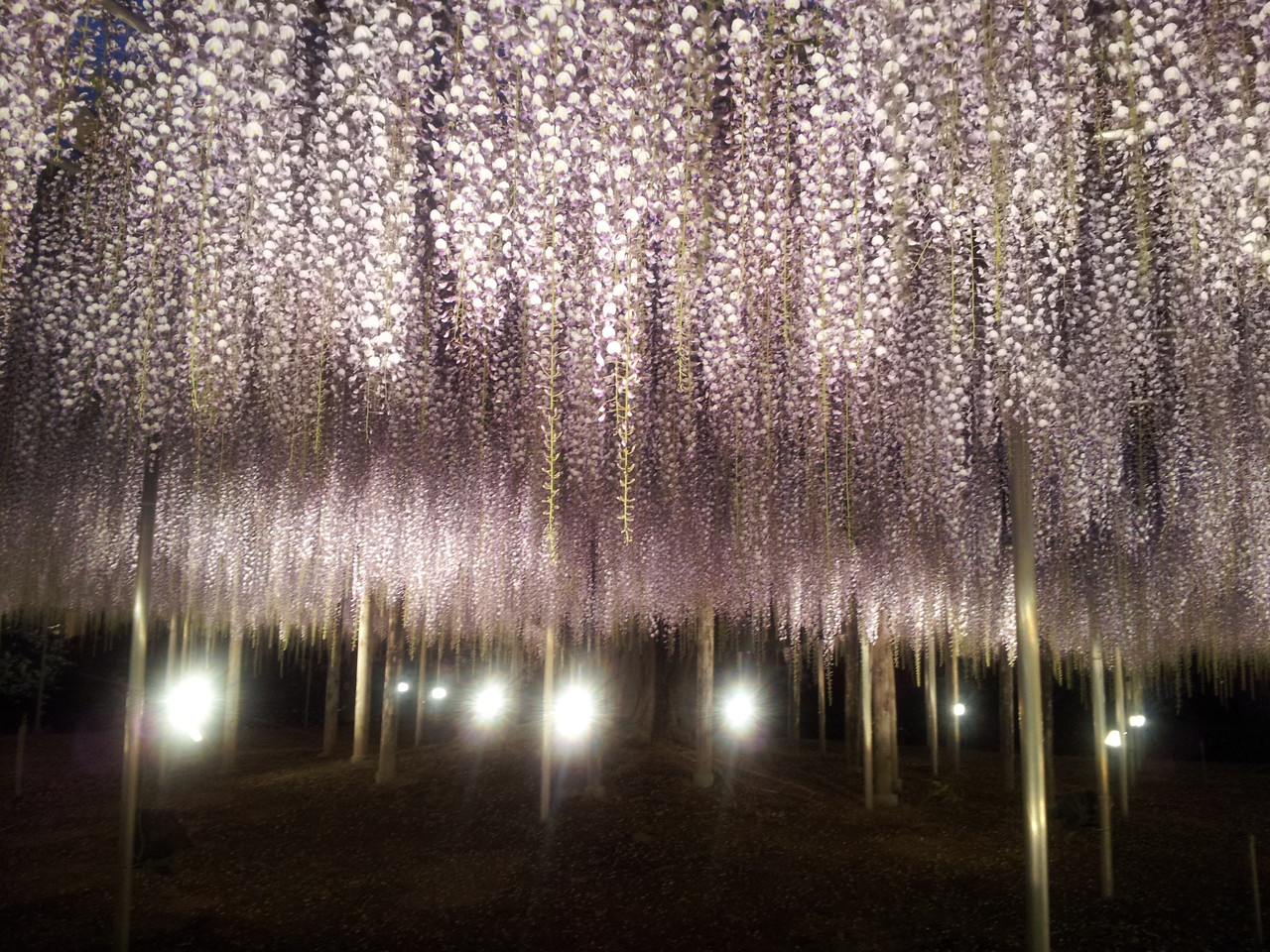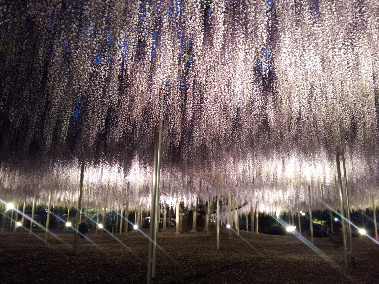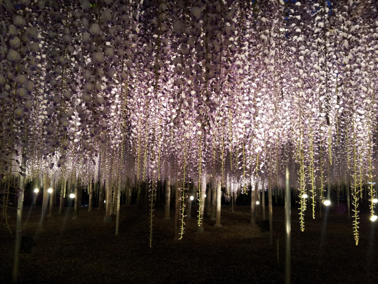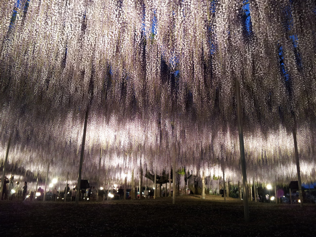 ライトアップされた藤の姿が見たくて、陽が沈む頃に足を運びました。