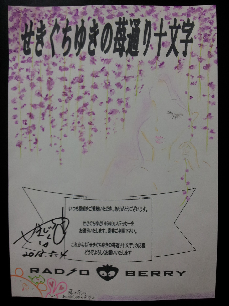 今週もRADIO BERRY「せきぐちゆきの苺通り十文字」をお聴き下さいました皆様、スタジオ前へお越し下さいました皆様、本当にありがとうございました