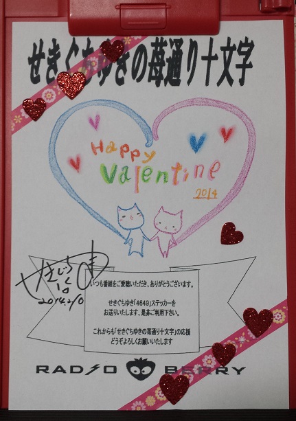 夕方の番組で月曜日のアシスタントを務められている咲麻ゆきちゃんが、手作りのバレンタインチョコレイトをくれました♪