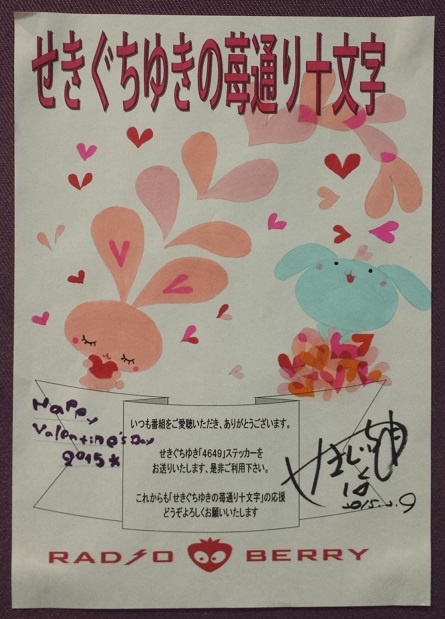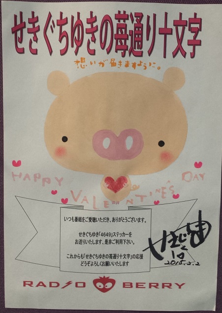 今週も「せきぐちゆきの苺通り十文字」をお聴き下さいました皆様、大変寒い中スタジオ前へお越し下さいました皆様、本当にありがとうございました