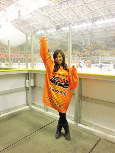 下の写真はアイスホッケーのプロチーム、日光アイスバックスのキュートなキャラクター・しかっち。