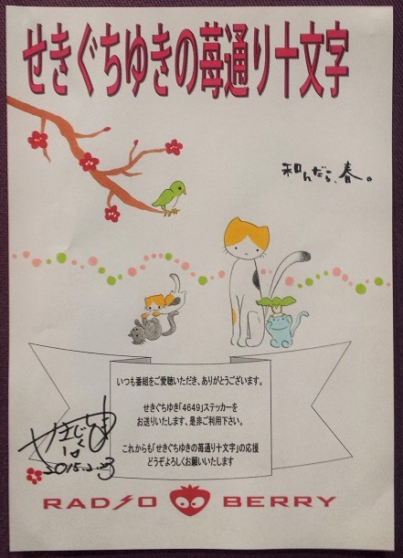 今週も「せきぐちゆきの苺通り十文字」をお聴き下さいました皆様、スタジオ前へお越し下さいました皆様へ、心より感謝を申し上げます。
