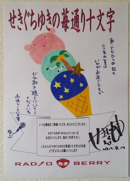 前日の「苺通り」も、お聴き下さいました皆様、スタジオ前へお越し下さいました皆様へは心より感謝を申し上げます