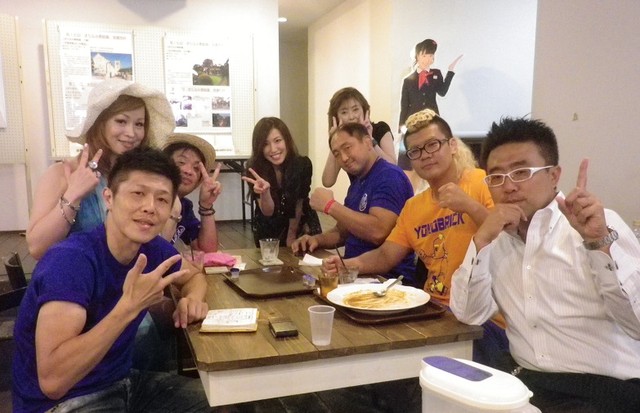 「ファイティングビアガーデン2015」広報活動中、隙間時間、宮カフェでの一枚♪