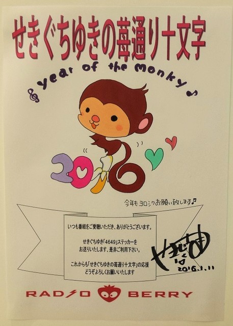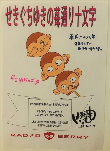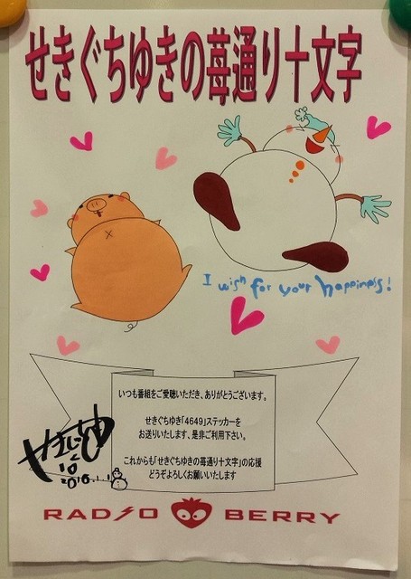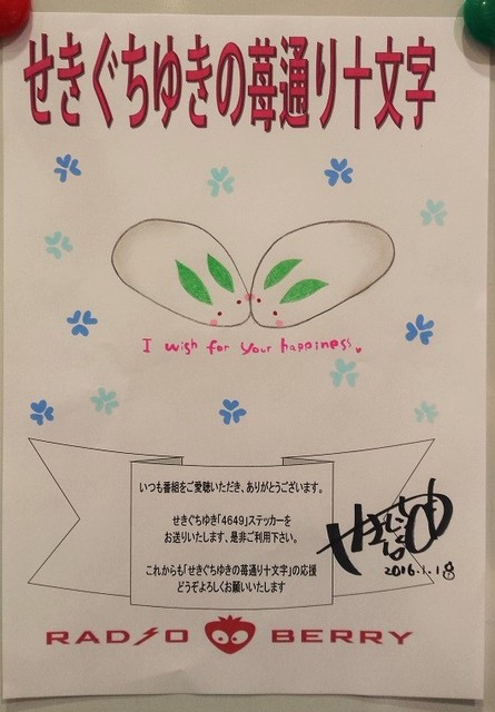 今週も、せきぐちゆきの苺通り十文字、お聴きくださいました皆様、大変寒い中スタジオ前にお越し下さいました皆様、本当にありがとうございました