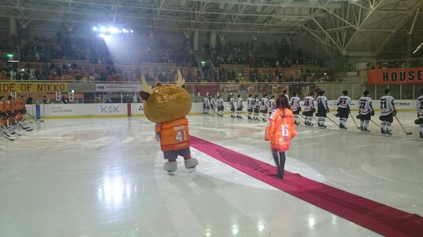 日光霧降アイスアリーナにて行われた日光アイスバックスVS韓国のチーム デミョン キラーホエールズ戦におきまして国歌を独唱。