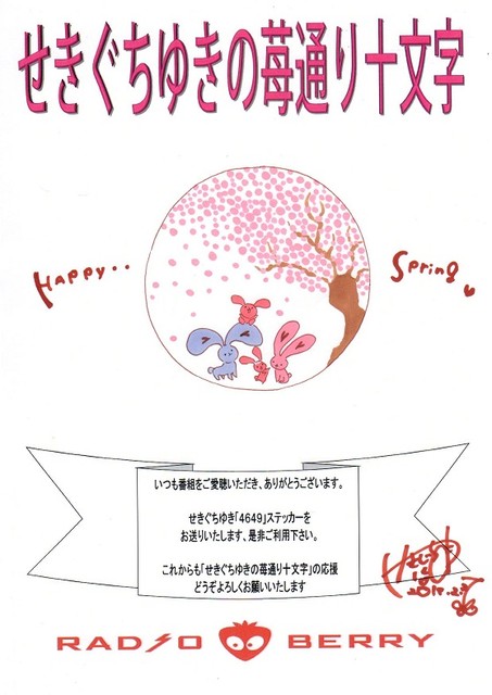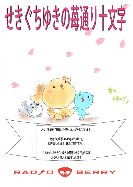 メッセージはRADIO BERRYホームページの「リクエスト・メッセージ」の応募フォームから、「せきぐちゆきの苺通り十文字」をクリックすると送ることが出来ます♪