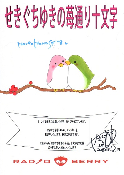 「せきぐちゆきの苺通り十文字」、今週のメッセージテーマは「春、来てますか?」。
