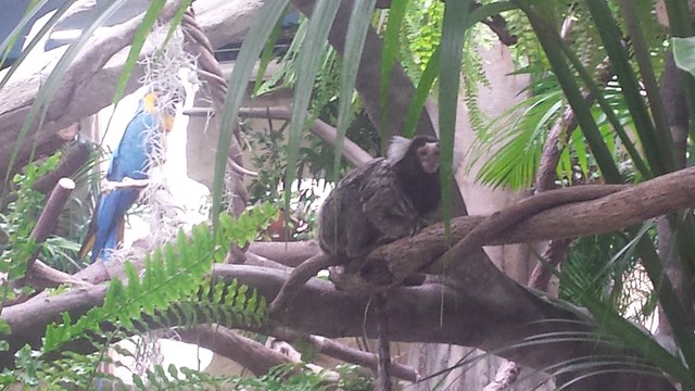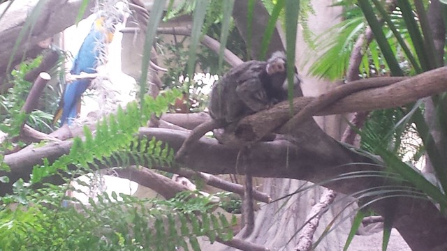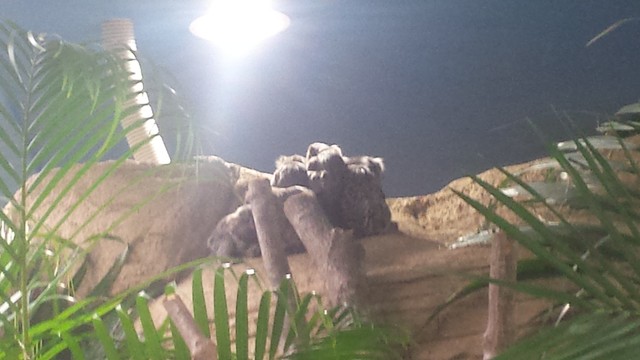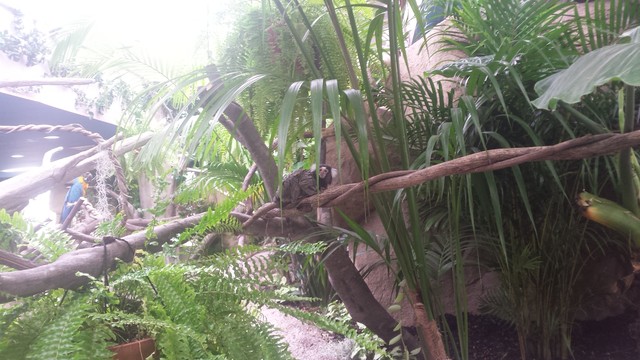 しかもね、前回訪れた時は小さなガラスのケージ越しに一匹だけだったのですがね、今回は新設された「熱帯の森」という部屋の真ん中のお山に……