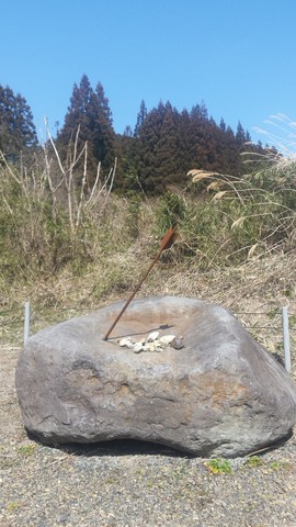 義経が武運を占ったとされる矢の根石(やのねいし)。