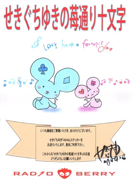 今日は20時30分〜 RADIO BERRY「せきぐちゆきの苺通り十文字」