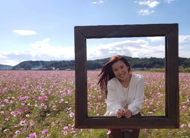 木製のフレームは「コスモス祭り」会場設置のもの。素敵なアイディアね。
