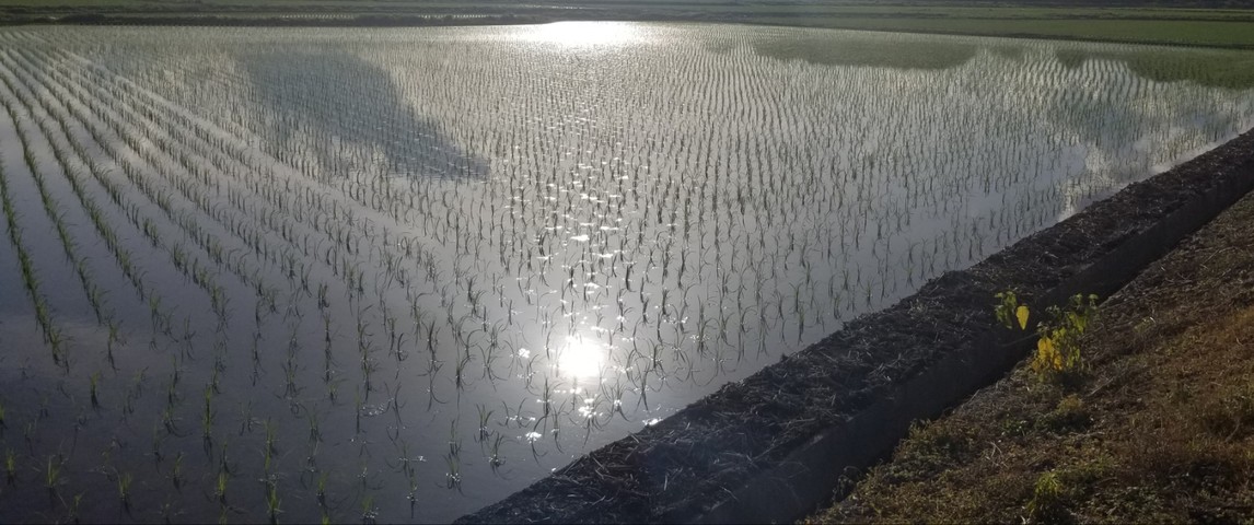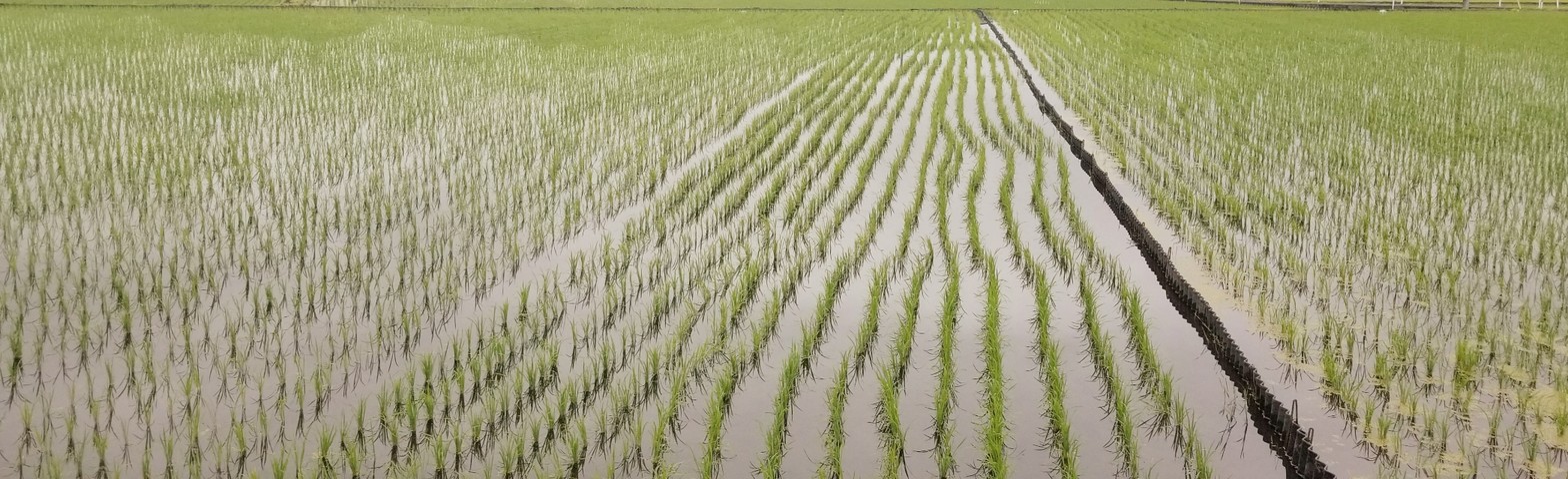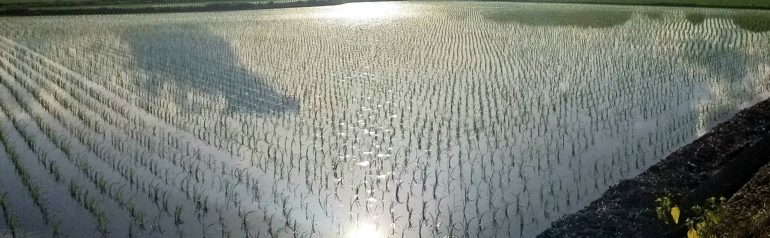 等間隔に揺れる稲は畳の目で、畦道は縁。