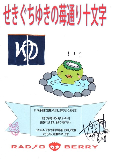 今夜は20時半〜RADIO BERRY「せきぐちゆきの苺通り十文字」、メッセージ送ってね♪