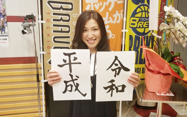 イベント終盤にお目見えになった羽を、司会の中里弥菜さんとシェア♪