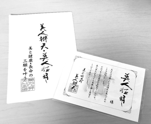 美人証明なるものを頂きました。