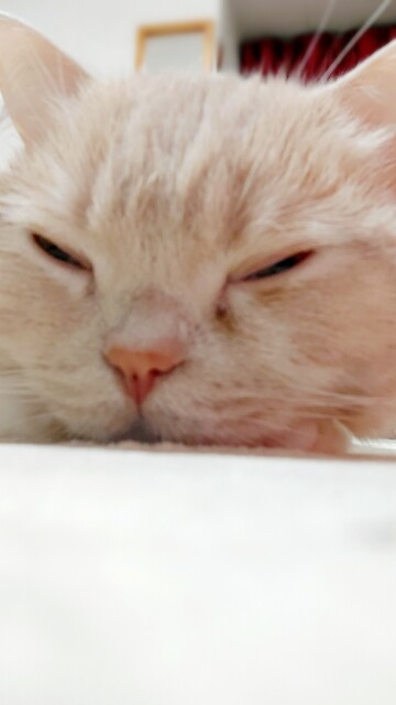 ちなみに今は、カーペットに座るわたくしの膝の内側にすっぽり収まって寝ちゃってます。
