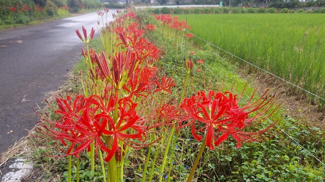 曼殊沙華、地獄花、死人花、幽霊花、雷花、剃刀花、狐花、狐の剃刀、狐の松明、葉見ず花水……他にもいくつもあるようですが、こんなにも沢山の異名を持つ花をわたくしは他に知りません。