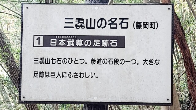 三毳山には「三毳山七石」とされる名石があるそうですが、その内の一つ「日本武尊の足跡石」を示す標識が。