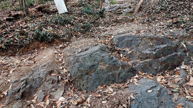 コンクリートの階段が終わったかと思うと、今度は削れた岩場の石段。