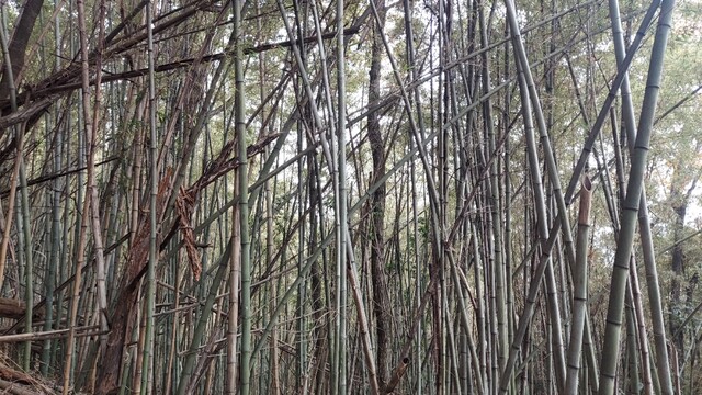 おそらく進みすぎているので、そこから引き返す形で、お山になった雑木林の緩い斜面を登る。