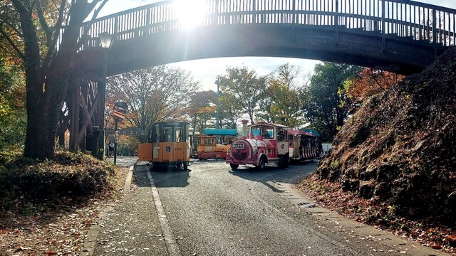 お目当ての富士見台まではいくつかのハイキングコースや園路を進むか、園内を周遊しているフラワートレインなるディーゼルエンジン車でその付近まで行けるようでした。