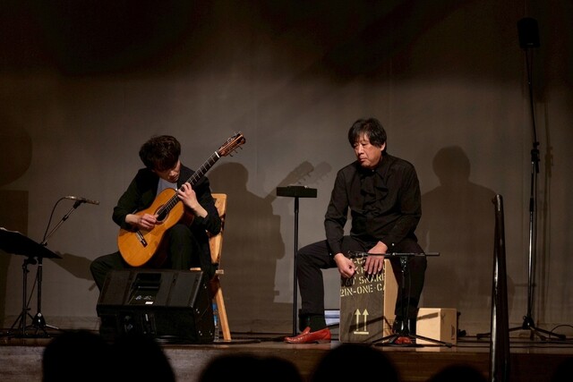 2部では、劇中で繊細なクラシックギターを奏でて下さった渡邊洋邦さんと、ミュージシャンでもあられる音響の杉田雅彦さんのカホンのコラボレーションが会場を湧かせて下さいました。